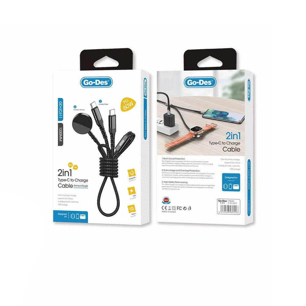 Go Des GD-UC611 2in1 Android Watch Uyumlu Wireless Type-C PD Hızlı Şarj Kablosu 60W 1.2M
