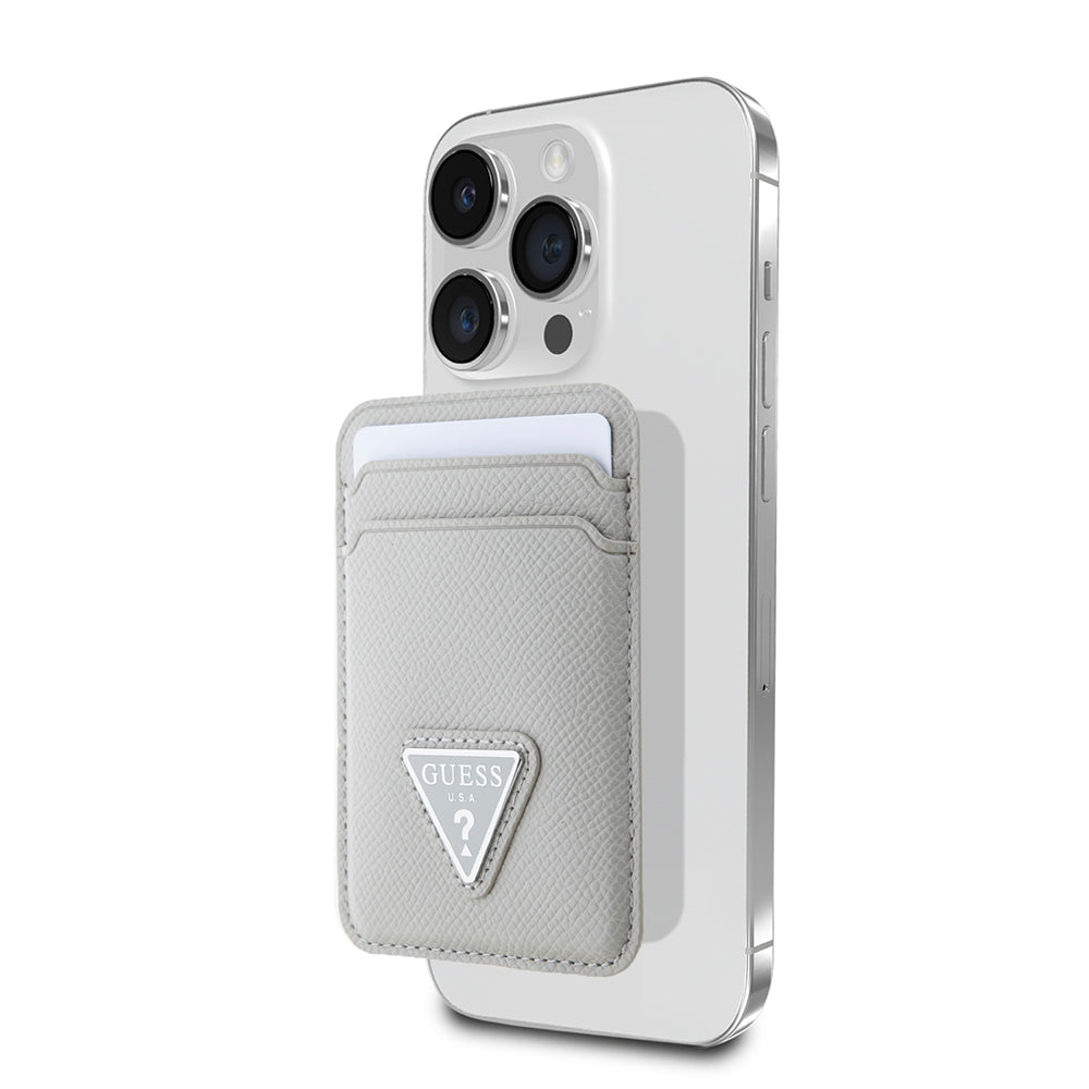 Guess Orjinal Lisanslı 2 Hazneli Üçgen Logolu Deri Magnetik Kartlık Bej