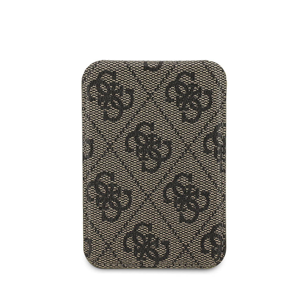 Guess Orjinal Lisanslı PU Deri 4G Desenli Metal Büyük 4G ve Yazı Logolu Standlı Magnetik Kartlık Kahverengi