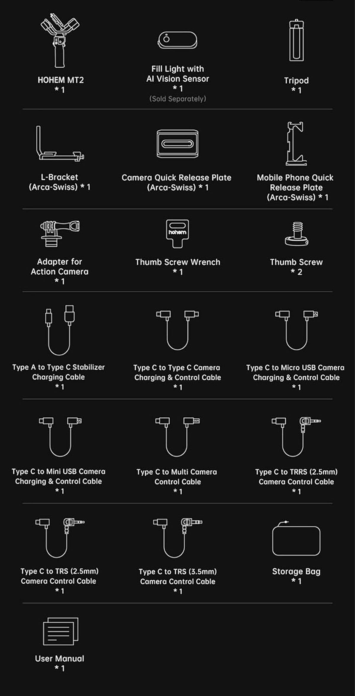 Hohem iSteady MT2 3 Eksenli El Tipi AI Yapay Zeka Görüş Sensörlü Kamera Gimbal Stabilizatör Siyah