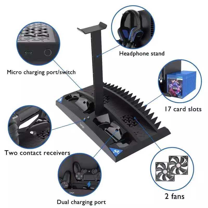 Playstation 4 serisi Oyun konsolları için oyun kollarınızı şarj edebileceğiniz ve kulaklıklarınızı koyabileceğiniz şık stand