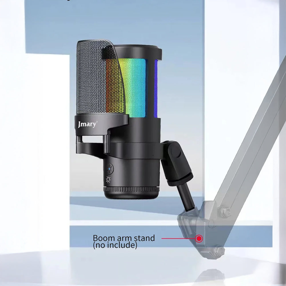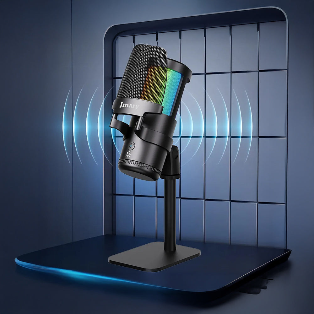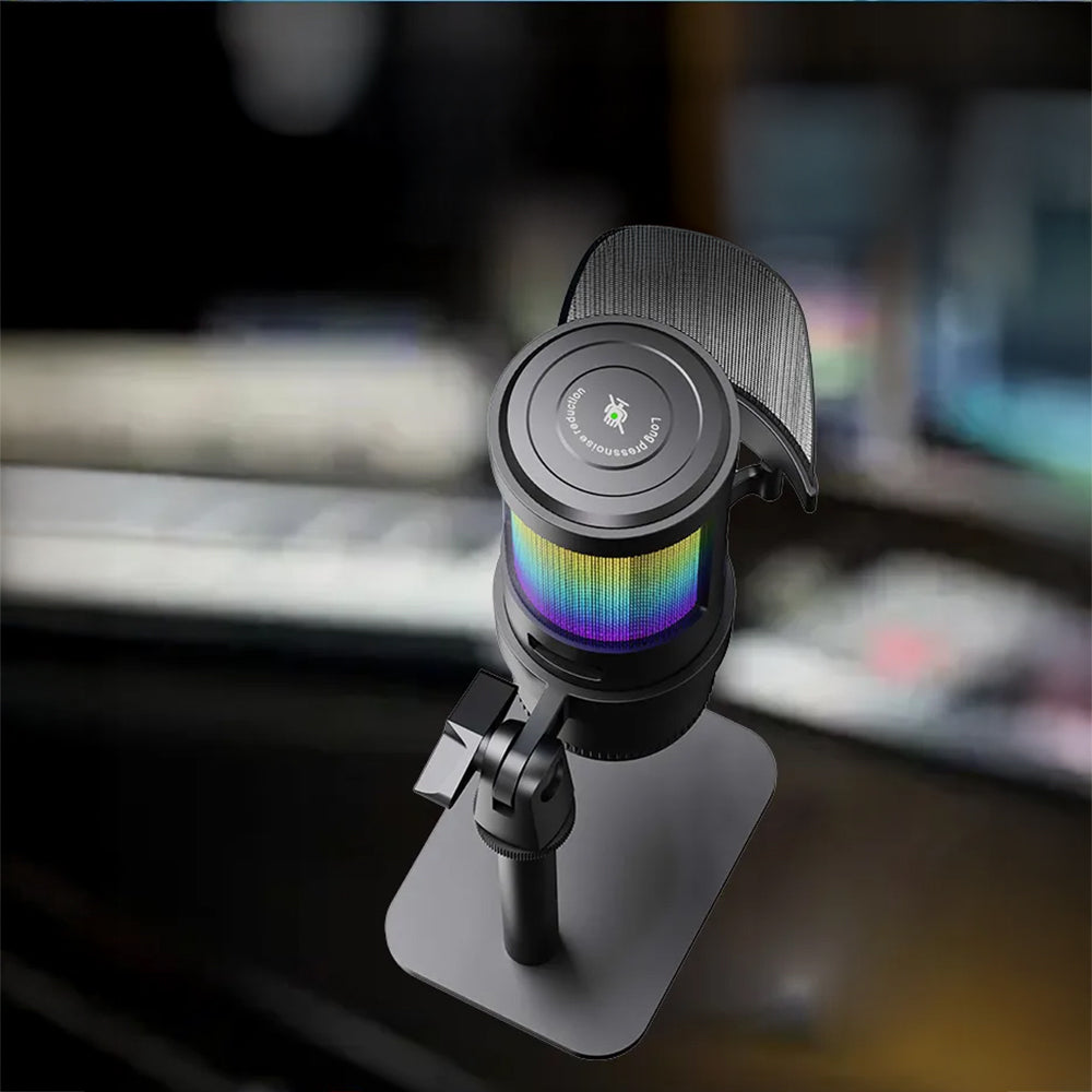 Mikrofonun üzerindeki hassas kontrol düğmeleri ile sesi kolayca artırabilir, azaltabilir veya tek tuşla sessize alabilirsiniz. RGB ışıklarla donatılmış gövdesi, özellikle yayın yapan kullanıcılar için görsel açıdan da etkileyici bir deneyim sunar. Ayrıca 360° Dönebilen sabitleyici ayağı ile kullanım açınızı özgürce belirleyebilirsiniz. Gecikmesiz kulaklık çıkışı ise gerçek zamanlı izleme için büyük avantaj sağlar.