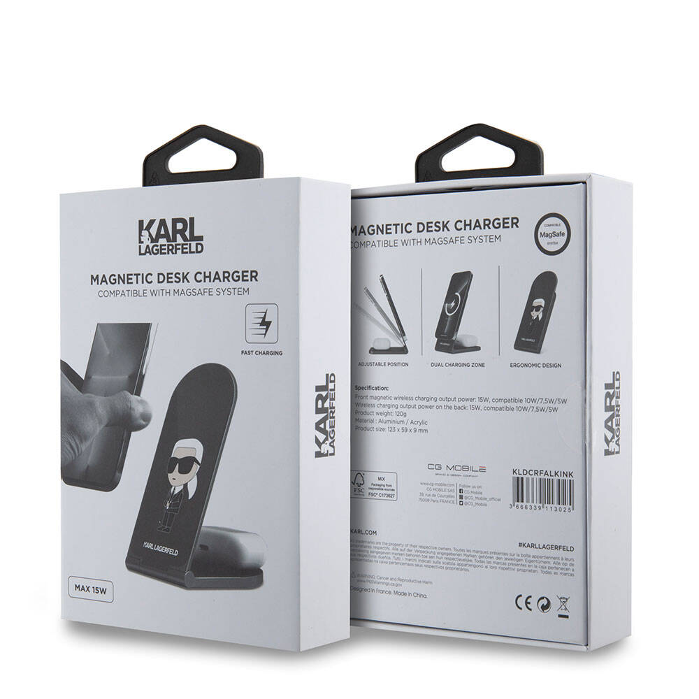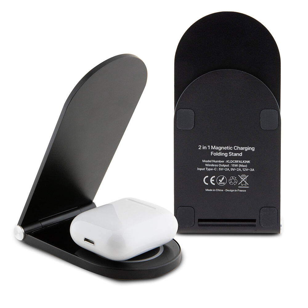 Karl Lagerfeld Orjinal Lisanslı Katlanabilir Baskılı İkonik Karl Logolu Magnetik Kablosuz Şarj Standı Siyah