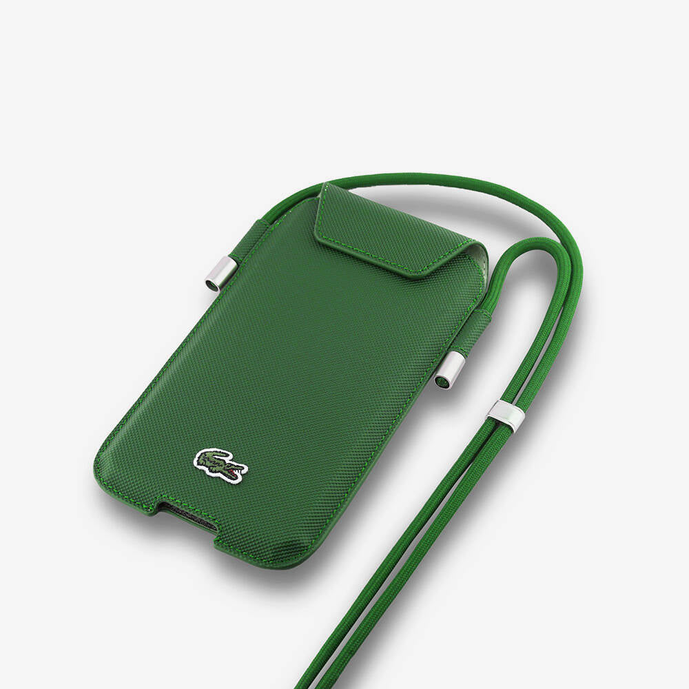 Lacoste Orjinal Lisanslı Çapraz Vücut Askılı PU Pike Desenli 6.7 inç'e Kadar Universal Kılıf Yeşil