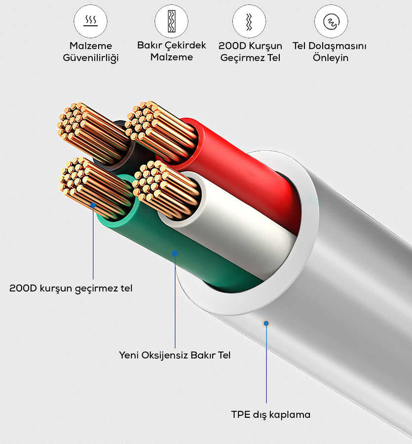 Ultra esnek karışmayı önleyici kablo dizaynı