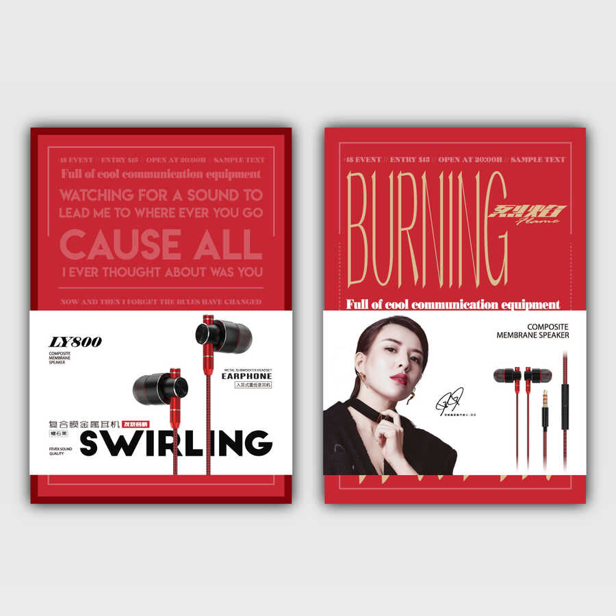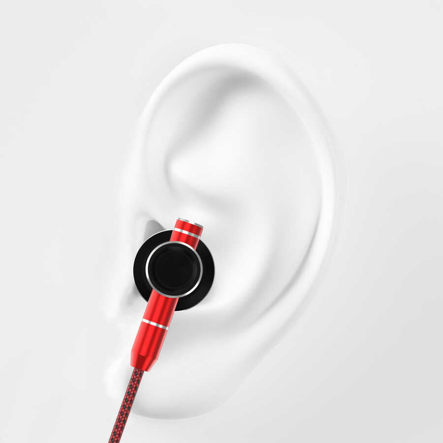 Siyah kırmızı kulak içi kulaklık tasarımı
