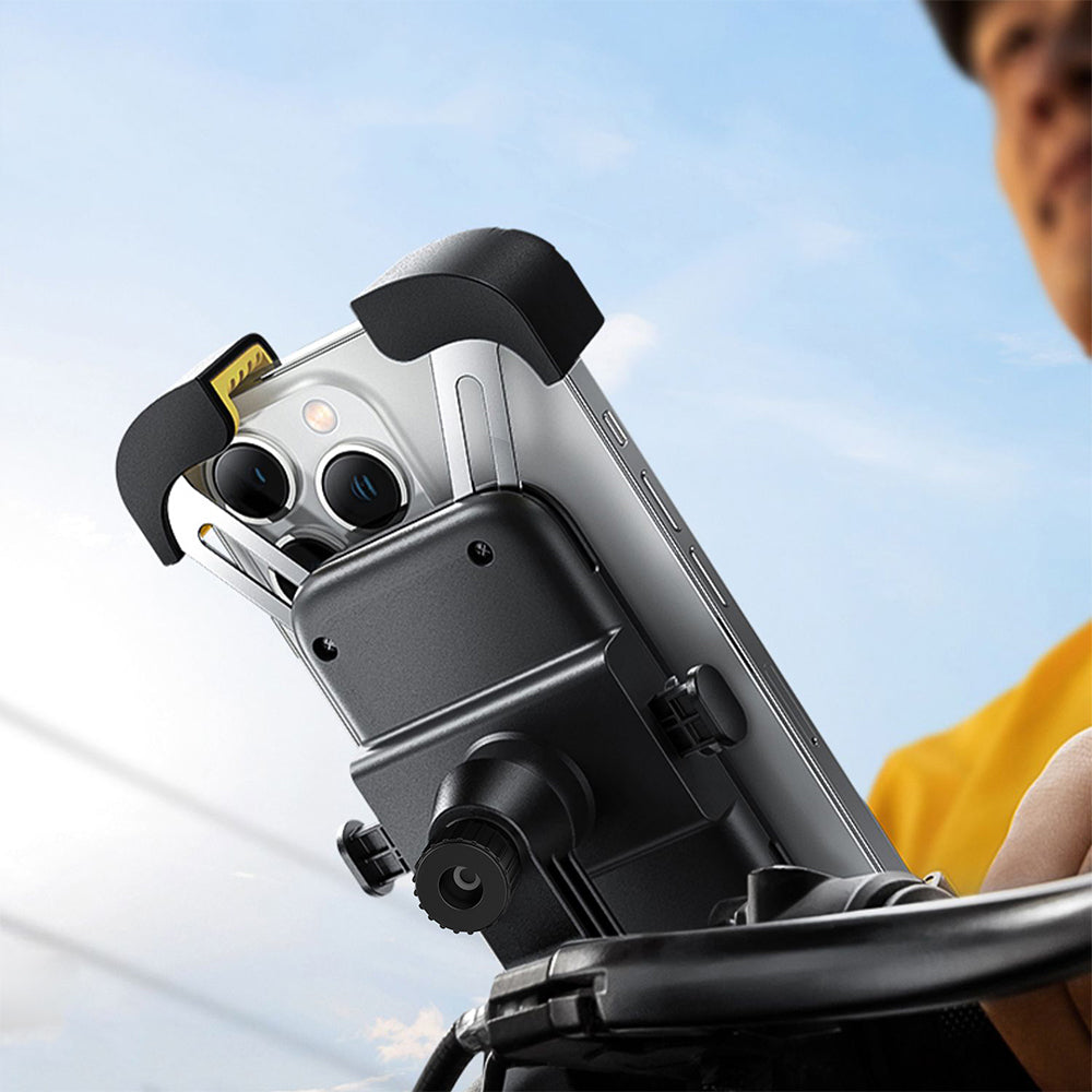 Lenyes CR169 Sarsıntı Önleyici 360 Derece Ayarlanabilir Bisiklet ve Motosiklet Telefon Tutucu Siyah