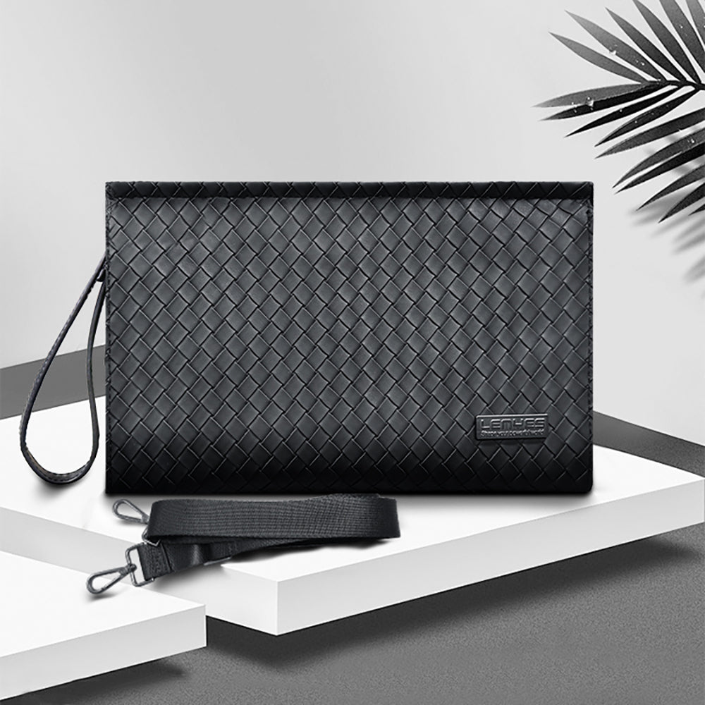 Lenyes LB531 Brett Dokuma PU Mat Deri Bilek Tasarımlı Çizilmeye Karşı Dayanıklı Aksesuar Çantası Siyah