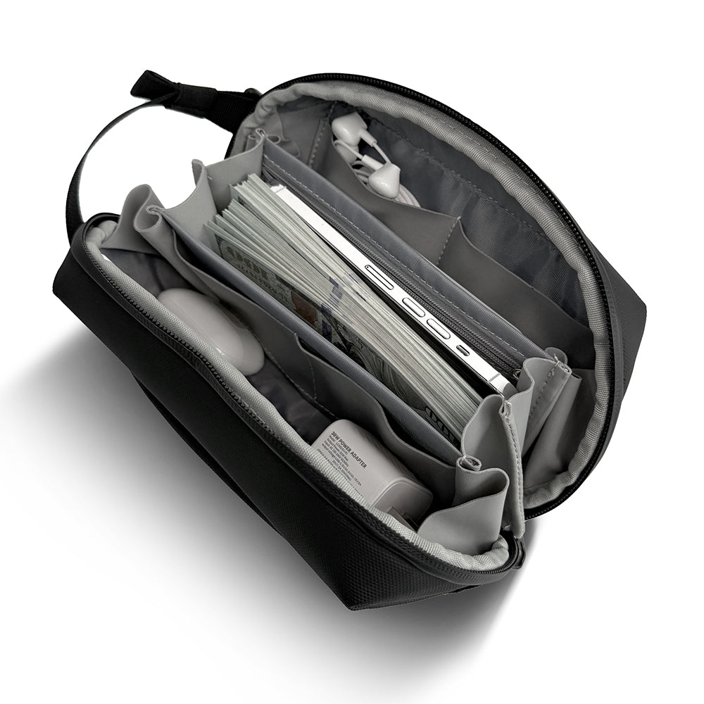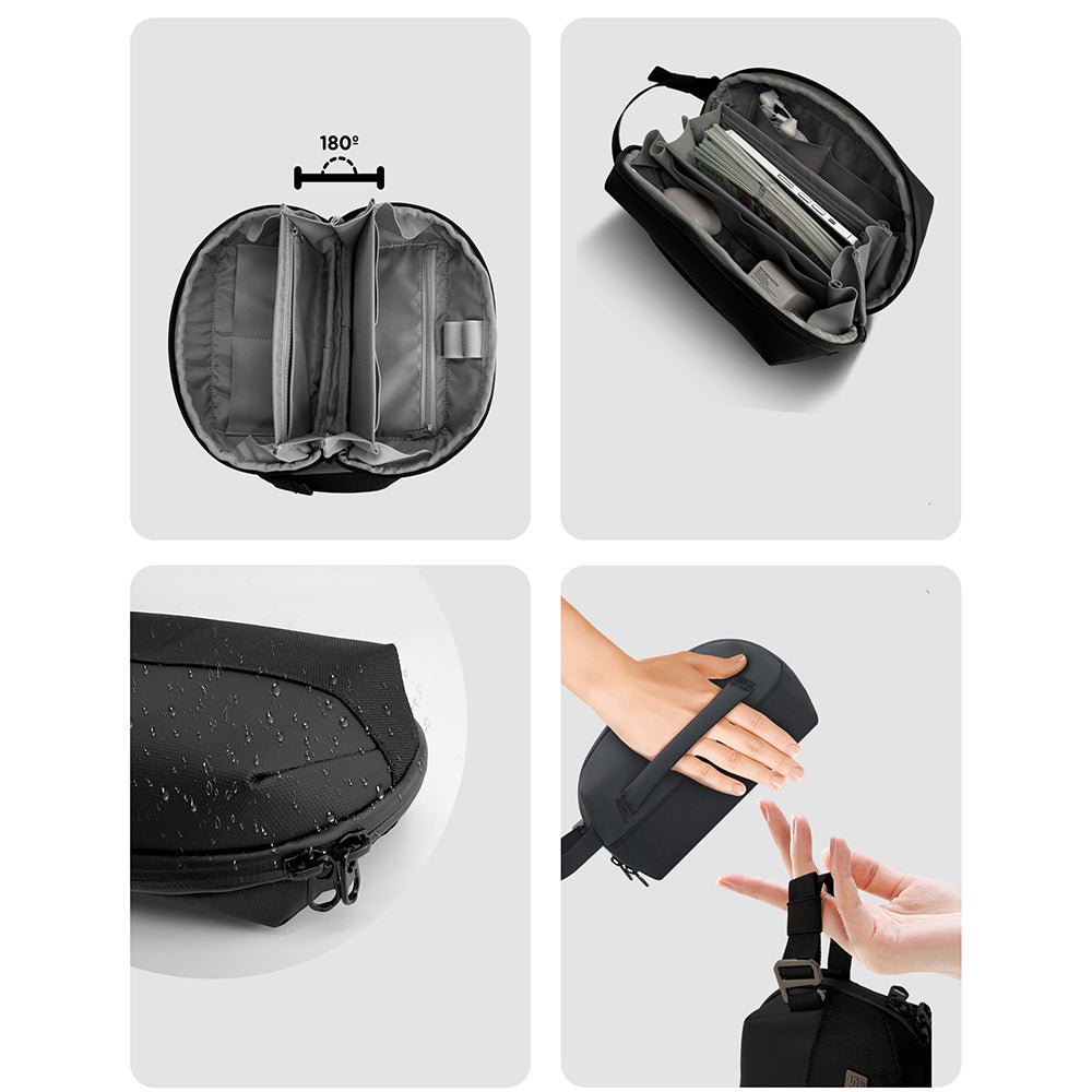 180° açılabilir akordeon tasarıma sahip iç yapı, çok katmanlı bölmeleriyle tüm eşyalarınızı düzenli bir şekilde yerleştirmenize olanak tanır. Her küçük aksesuar için özel olarak ayrılmış bölmeler sayesinde artık aradığınızı bulmak çok daha kolay. Evde şarj cihazı, kablo, powerbank gibi teknolojik aksesuarlarınızı düzenlemek için ideal; iş yerinde ise not defteri, kalem, USB bellek gibi ekipmanları tertipli bir biçimde taşıyabilirsiniz.