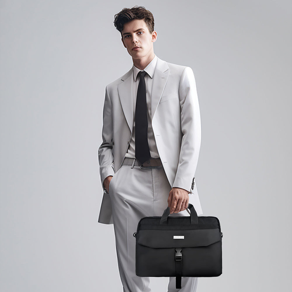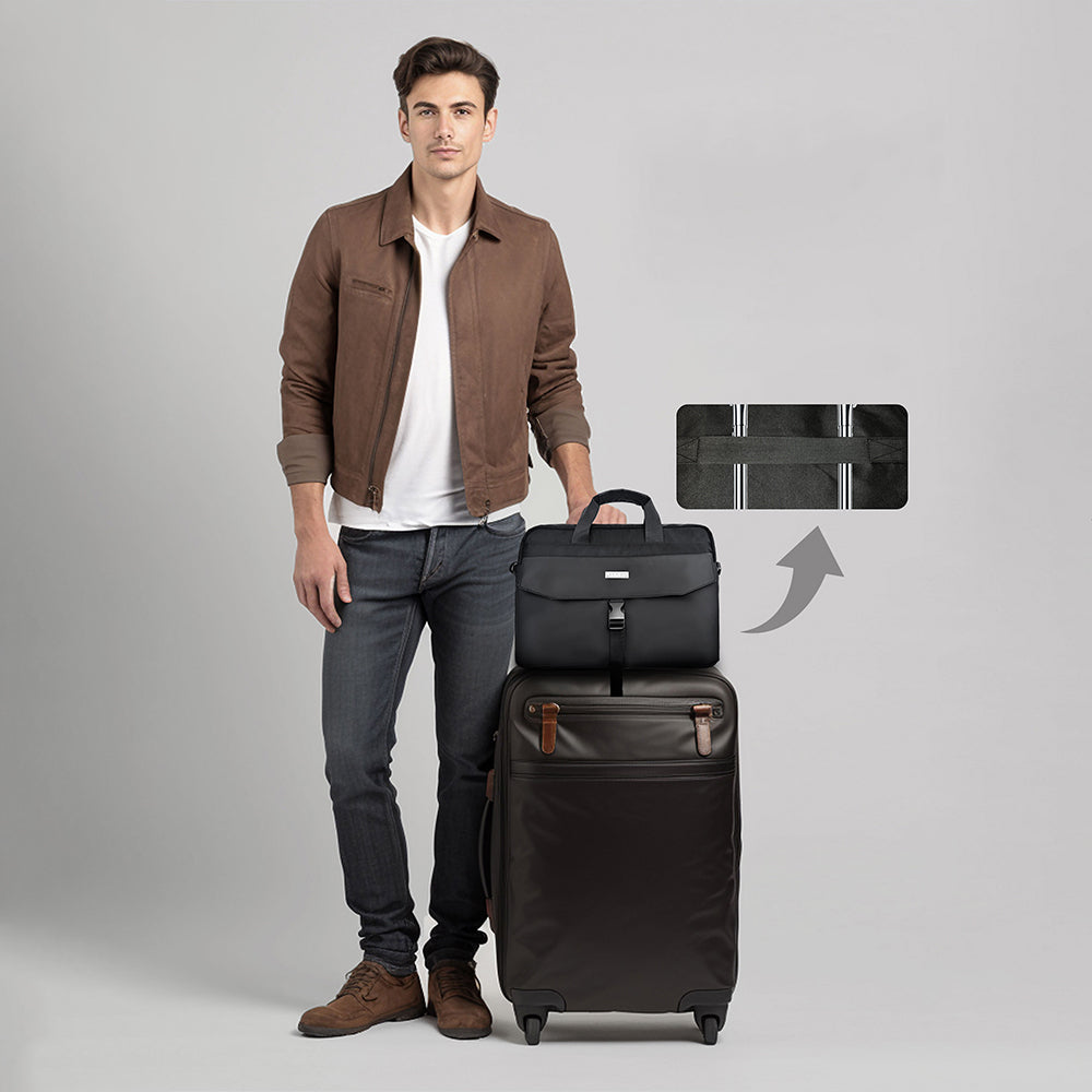 Lenyes LB578 Creator Serisi Su Geçirmez Polyester Kumaş Bagaj ve Çıkarılabilir Omuz Askılı 15-16 inç Laptop Çantası Siyah