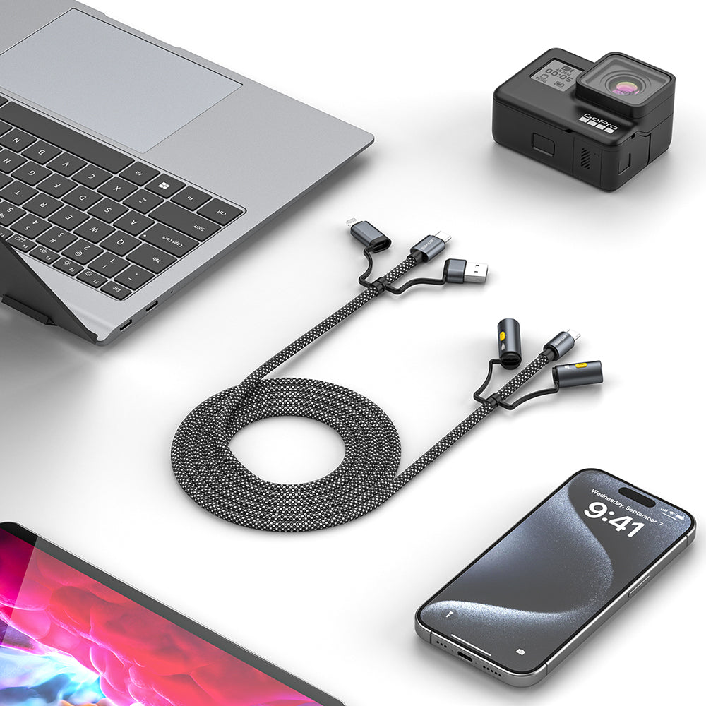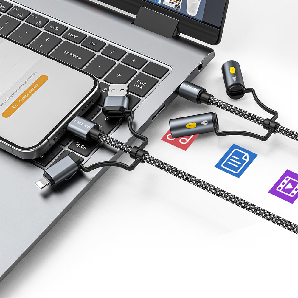 Lenyes LC112, 240W'a kadar güç desteği sunarak en yeni hızlı şarj protokolleri ile uyum sağlar. Yüksek hızlı 480Mbps veri aktarımı ile cihazlarınız arasında güvenilir ve hızlı bir bağlantı sunar. USB-C, Micro USB ve Lightning girişleri sayesinde neredeyse tüm cihazlarınız için uygundur.