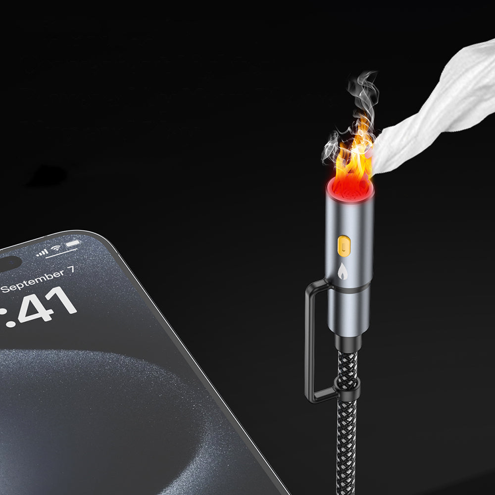 Bu kablo sadece bir şarj çözümü değil, aynı zamanda LED fener ve çakmaklık özellikleri ile donatılmıştır. Acil durum aydınlatması ve SOS modu sayesinde özellikle açık hava aktiviteleri ve kamp için idealdir. Alevsiz çakmak özelliği ise seyahatlerinizde pratik bir kullanım sunar.