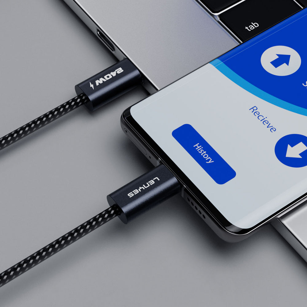 Lenyes LC522 Type-C to Type-C Hızlı Şarj Özellikli Data ve Şarj Kablosu 240W 1.2M Siyah