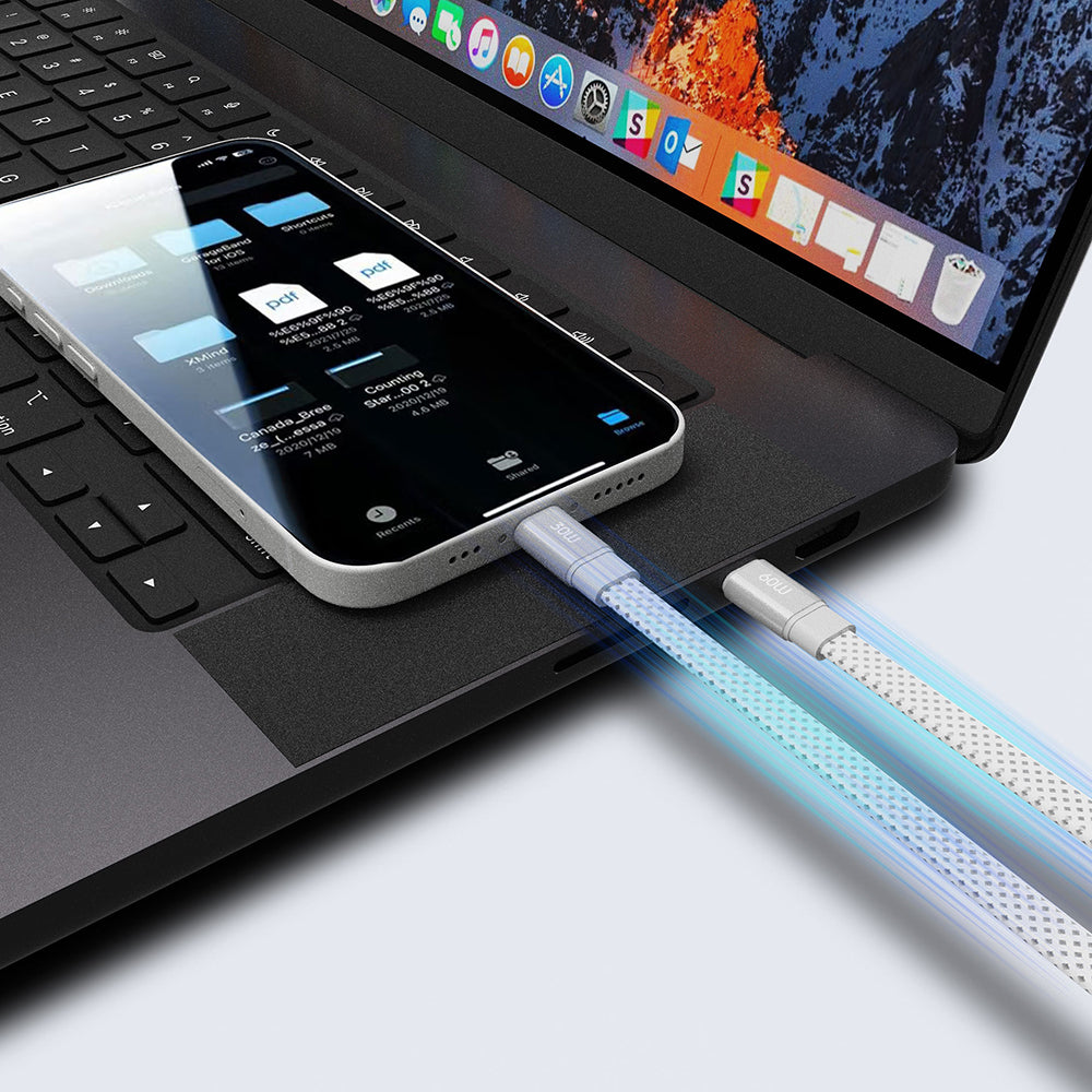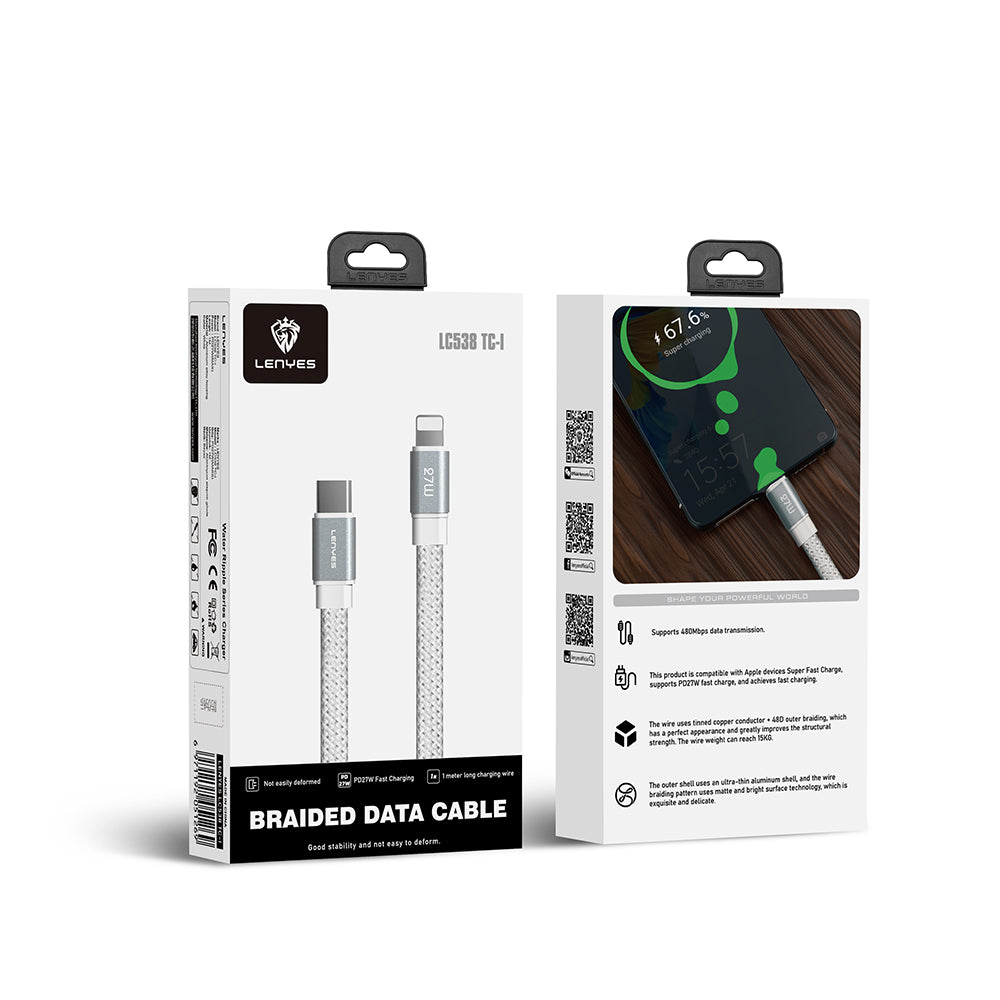 Lenyes LC538 Type-C to Lightning Hızlı Şarj Özellikli 48D Aramid Fiber Örgü Tasarımlı Data ve Şarj Kablosu 27W 1M Beyaz