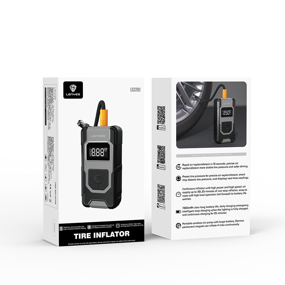 Lenyes LCI201, yalnızca 10 saniyede lastiklerinizi şişirerek zamandan tasarruf sağlar. Gelişmiş indüksiyon motoru, yüksek güçlü performansı ve 32L’ye kadar hava basıncı kapasitesi ile araçlar, motosikletler, bisikletler ve şişme yataklar gibi birçok kullanım için uygundur. Dijital ekranı sayesinde gerçek zamanlı basınç ölçümünü takip edebilir, akıllı çip teknolojisi ile hassas basınç kontrolü sağlayabilirsiniz.