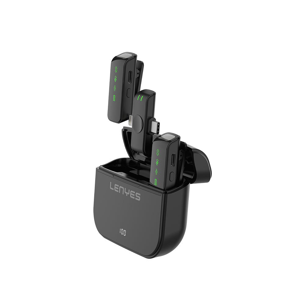 Lenyes LM203, mikrofon başına 80mAh kapasiteli pili ile 4 saate kadar kesintisiz kayıt imkanı sunar. 400mAh kapasiteli şarj bölmesi ise mikrofonunuzu hızlı bir şekilde şarj eder ve daha uzun süreli kullanım sağlar, böylece her zaman hazır durumda olur.
