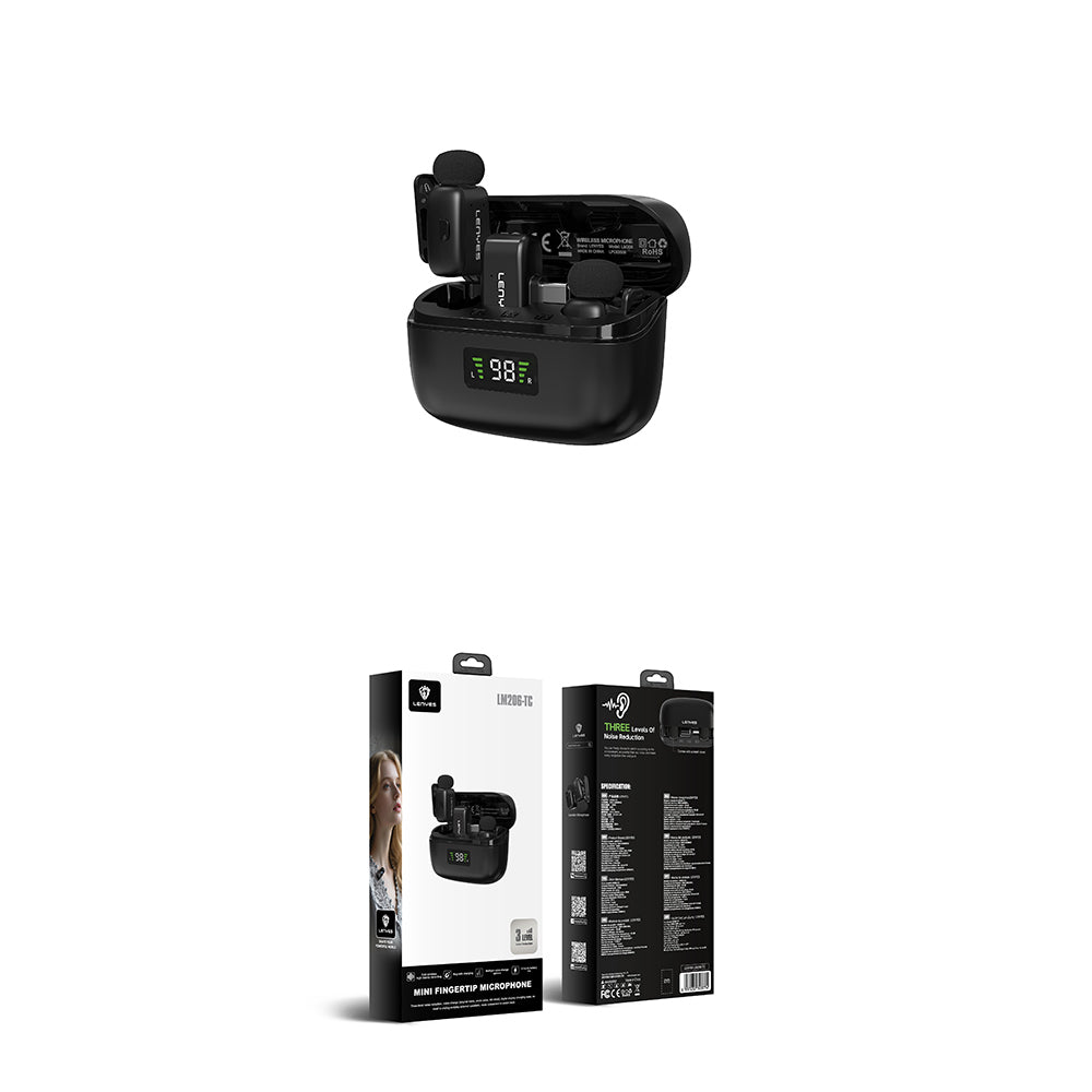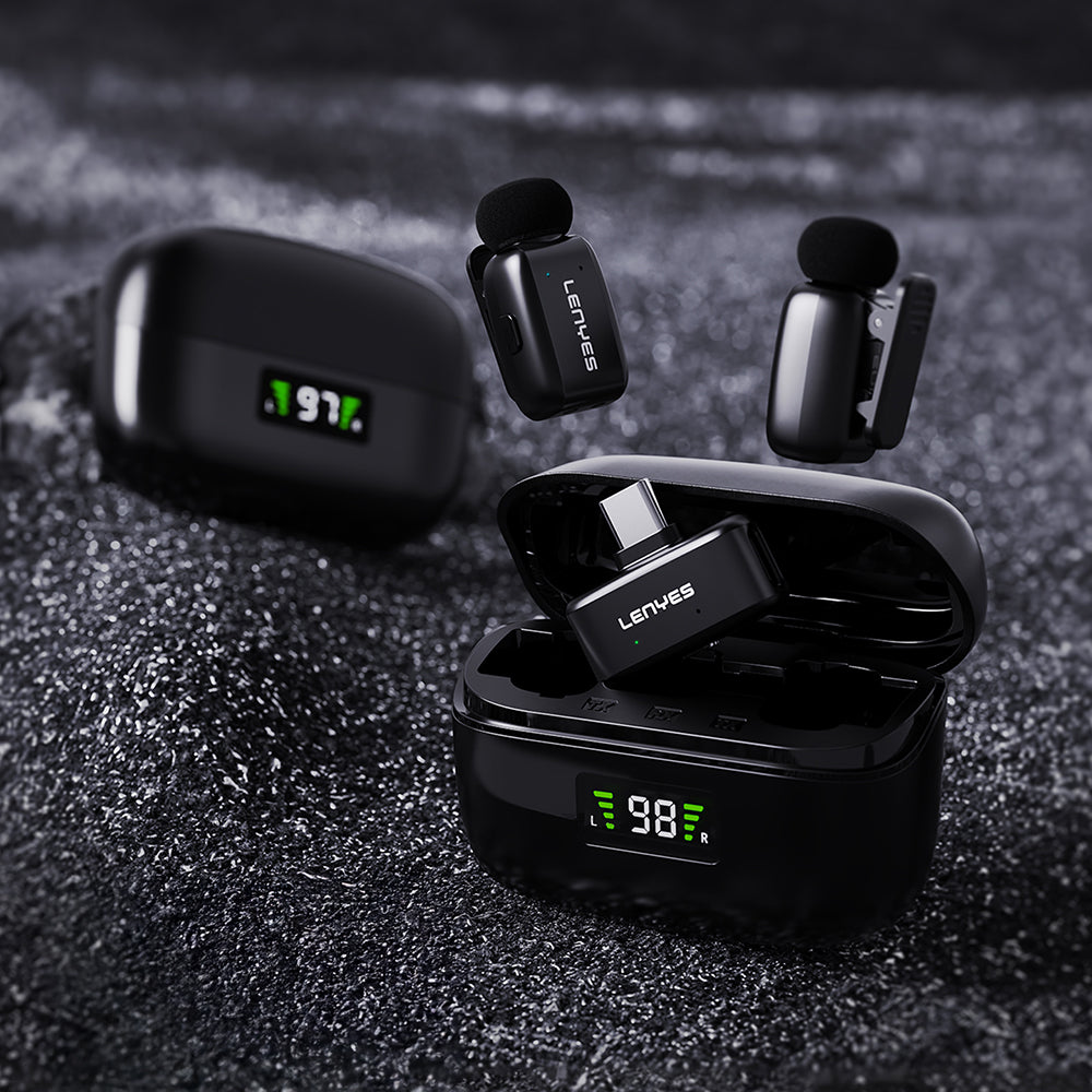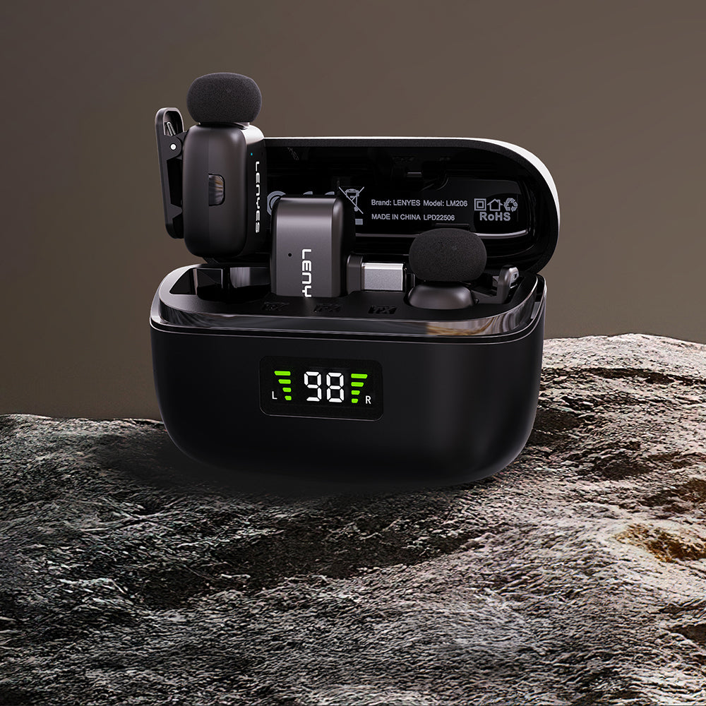 Lenyes LM206 Dijital LED Göstergeli Type-C Portlu Kablosuz Yaka Mikrofonu