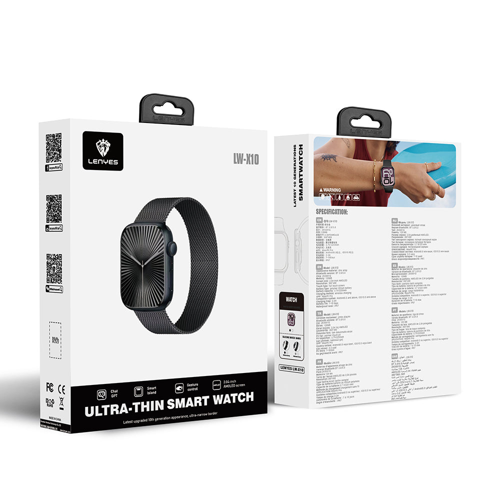 Lenyes LW-X10, teknoloji ve zarafetin mükemmel birleşimini temsil eder. 2.04 inçlik AMOLED ekranıyla bir akıllı saatten beklediğinizden çok daha fazlasını sunar. Bu ekranın sunduğu ultra yüksek çözünürlük (368x480), her ikonun ve her metnin kristal netliğinde görünmesini sağlar. AMOLED teknolojisinin derin siyahları ve canlı renkleri, saatinizi yalnızca bir cihaz değil, bileğinizde taşınan bir sanat eseri haline getirir. İşte bu yüzden LW-X10, modern kullanıcılar için eşsiz bir görsel deneyim sunar.