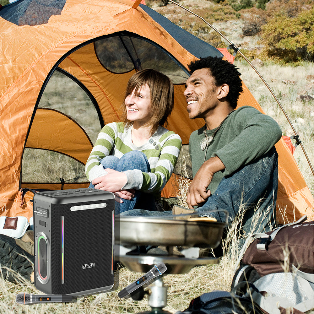 Lenyes S837, kompakt ve dayanıklı yapısıyla kolay taşınabilir bir hoparlör deneyimi sunar. Özel kayışlı tasarımı sayesinde seyahatlerinizde, doğa yürüyüşlerinizde veya arkadaş buluşmalarınızda rahatça taşıyabilirsiniz. Çift mikrofon ile birlikte gelen bu set, karaoke eğlencesini en üst seviyeye taşırken ses kalitesinden ödün vermez.