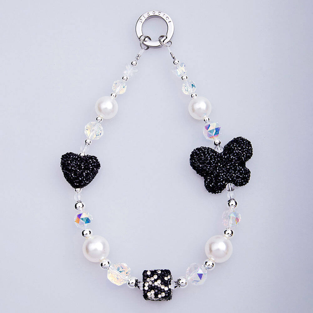 Picocici Siyah Taş Tasarımlı Üç Boyutlu Kelebek Telefon Bilek Askı İpi Beyaz
