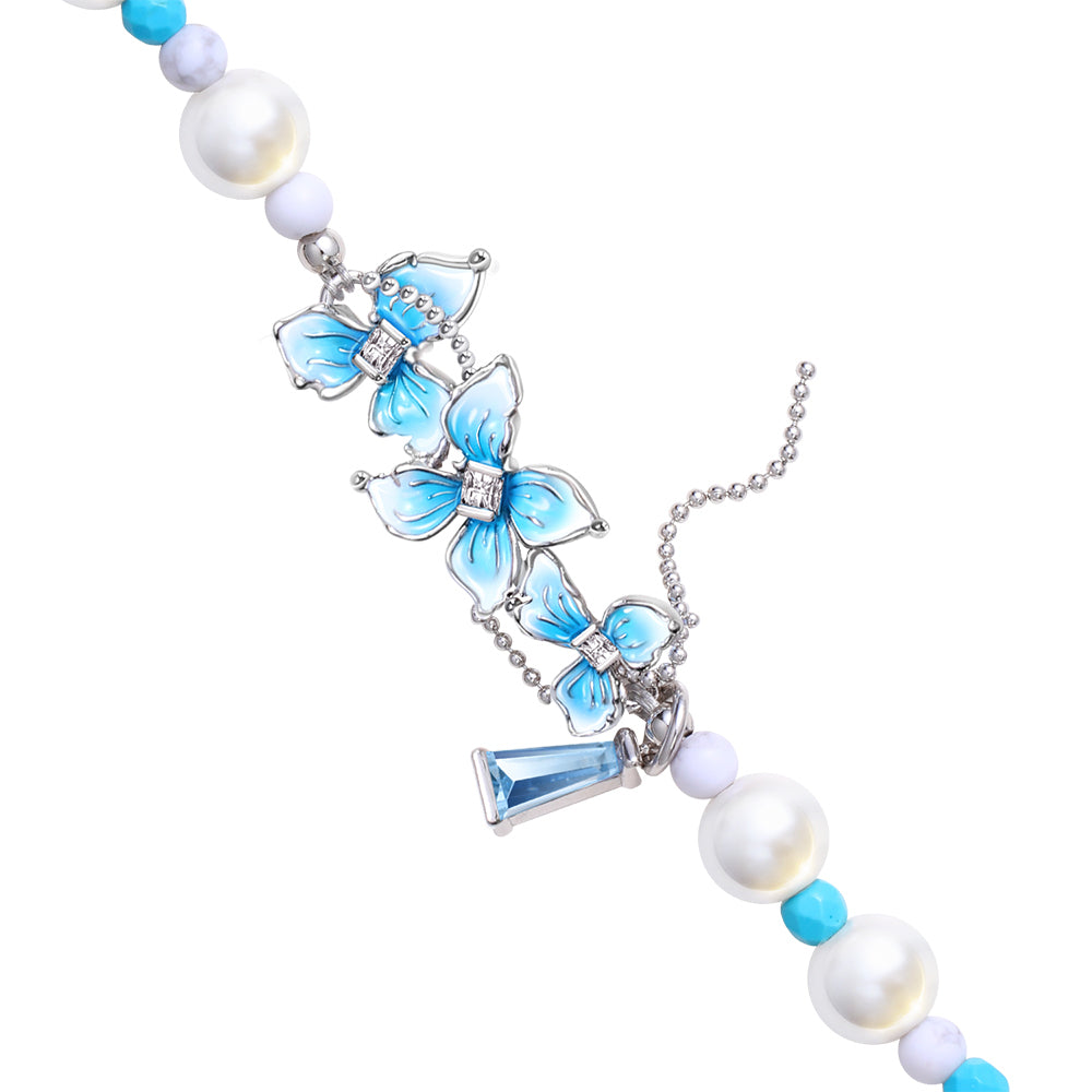 Pynana BlueFlower Serisi İnci Taşlı Telefon Bilek Askı İpi Mavi-Beyaz