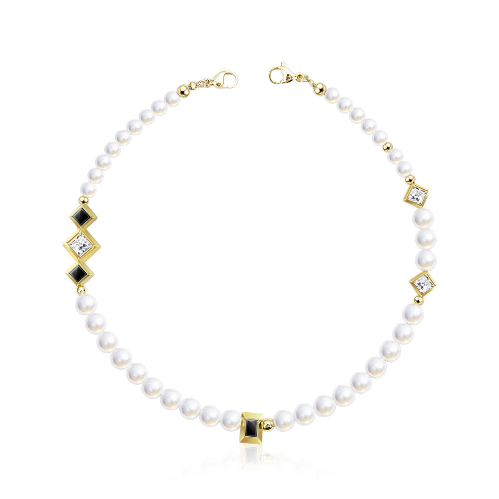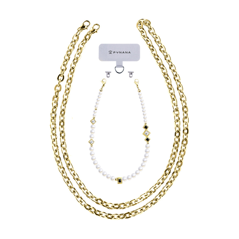 Pynana Free Diamond Serisi İnci Taşlı Telefon Boyun Askı İpi Siyah-Gold