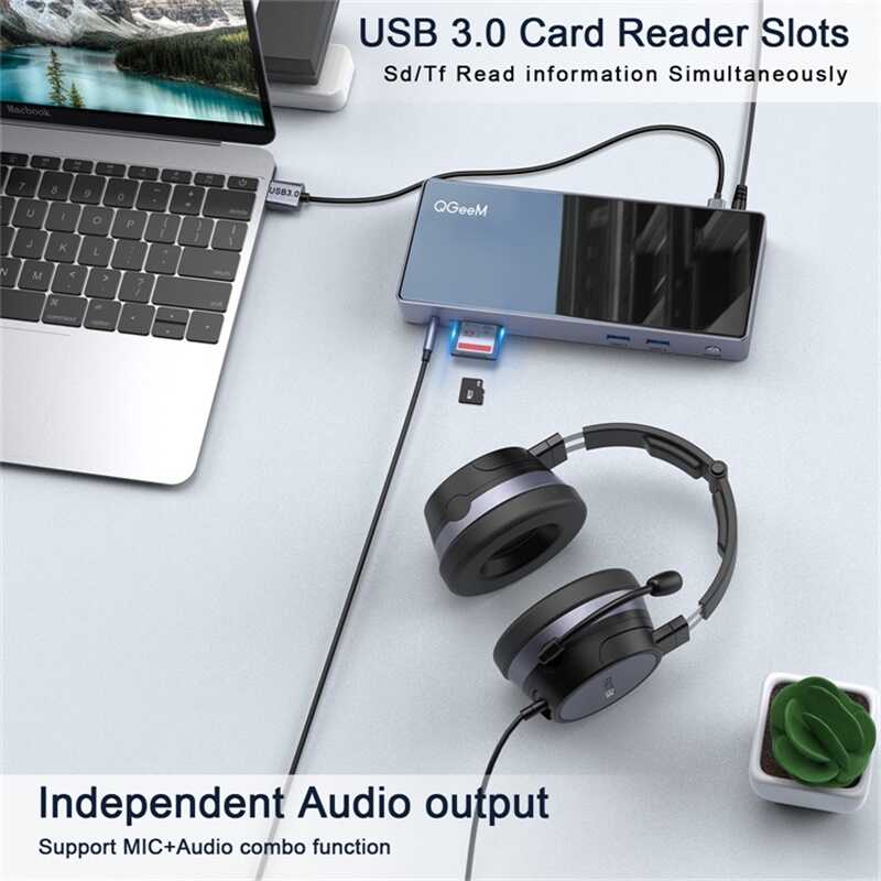 Qgeem QG-D6902 All in One Çoğaltıcı Type-C Hub Docking Station 4K-5K Displayport HDMI Destekli