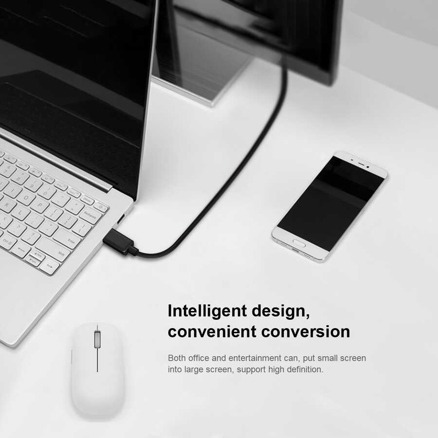 Qgeem QG-UA17 Type-C to VGA Adaptörü Yüksek Çözünürlüklü Dönüştürücü Kablo 1080p 60Hz 1.2 Metre