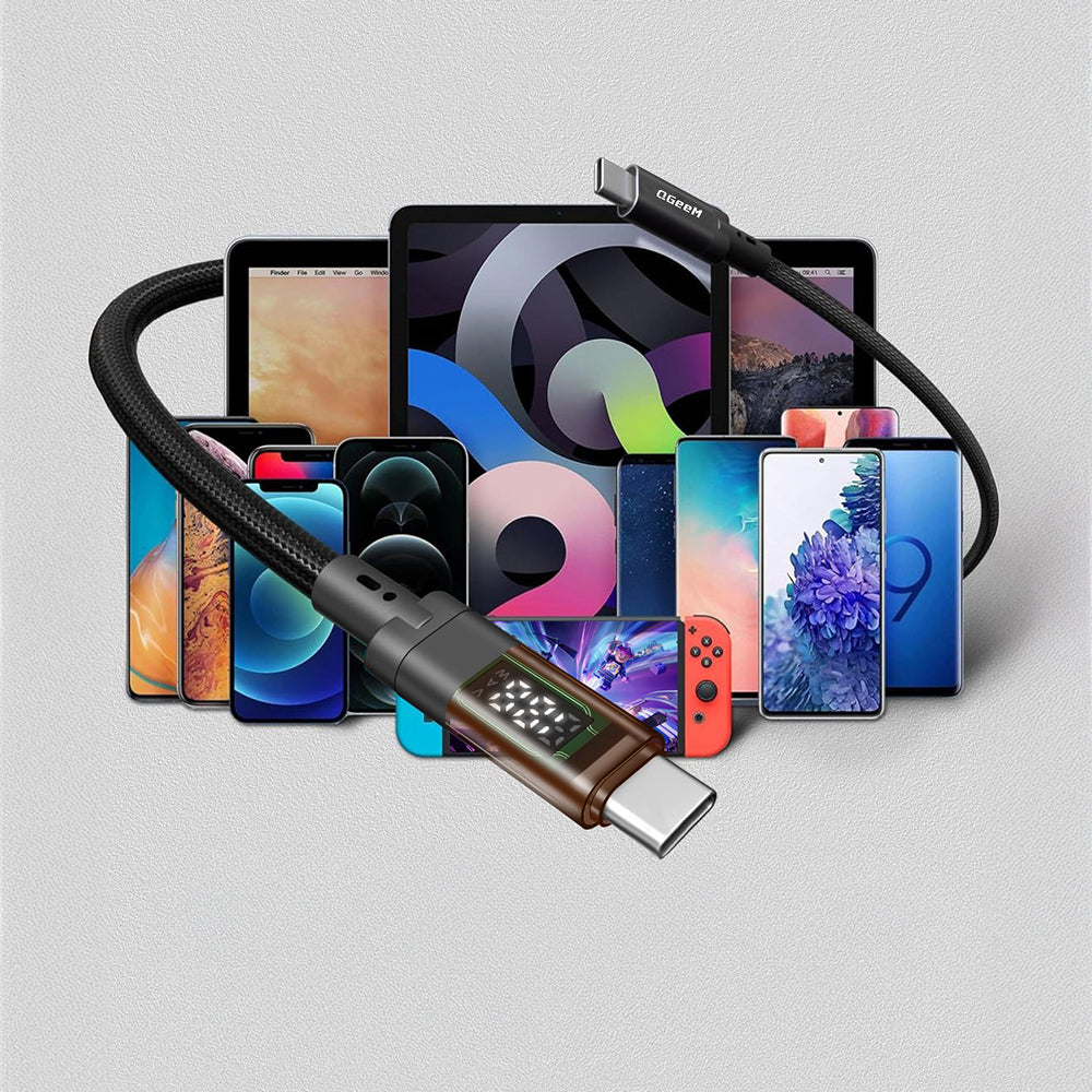 Qgeem QG04 Dijital LED Göstergeli Type-C to Type-C PD 40G 8K@60Hz Data Kablosu 240W 1M Siyah