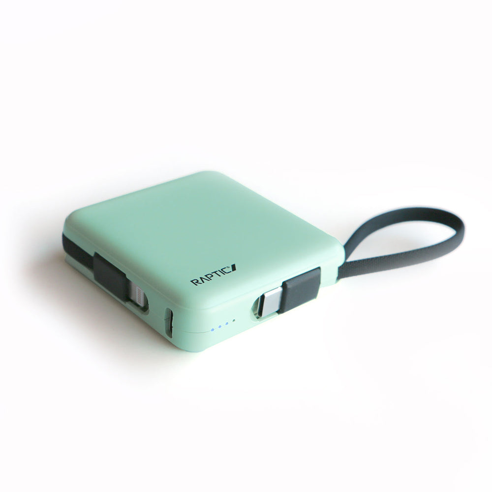 Raptic Lightning ve Type-C Kablolu Dijital LED Göstergeli Askılı Powerbank 5000mAh Kompakt ve Taşınabilir Tasarım Yeşil