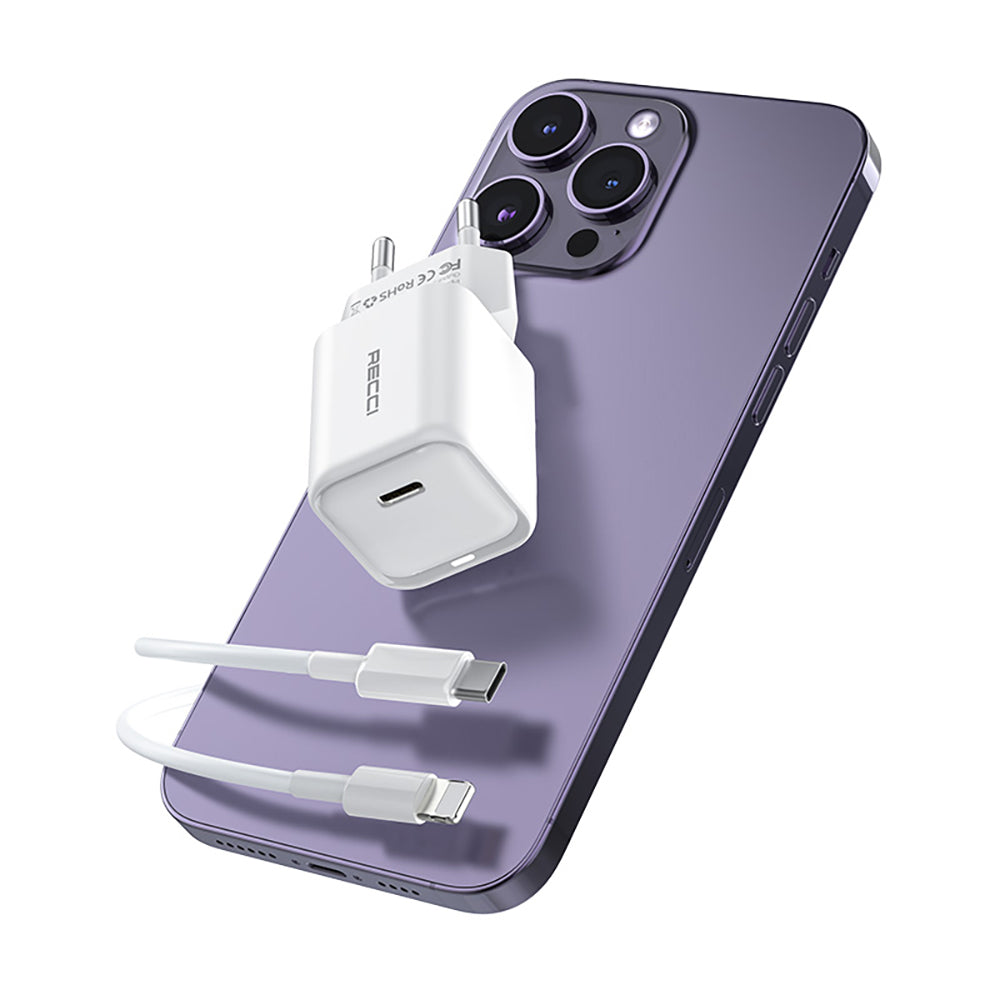 Recci RC65E Hızlı Şarj Başlığı Type-C to Lightning PD 20W Kablolu Şarj Seti