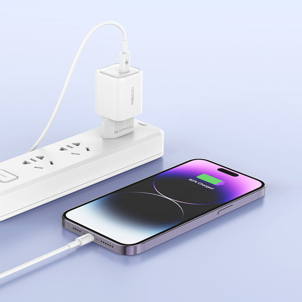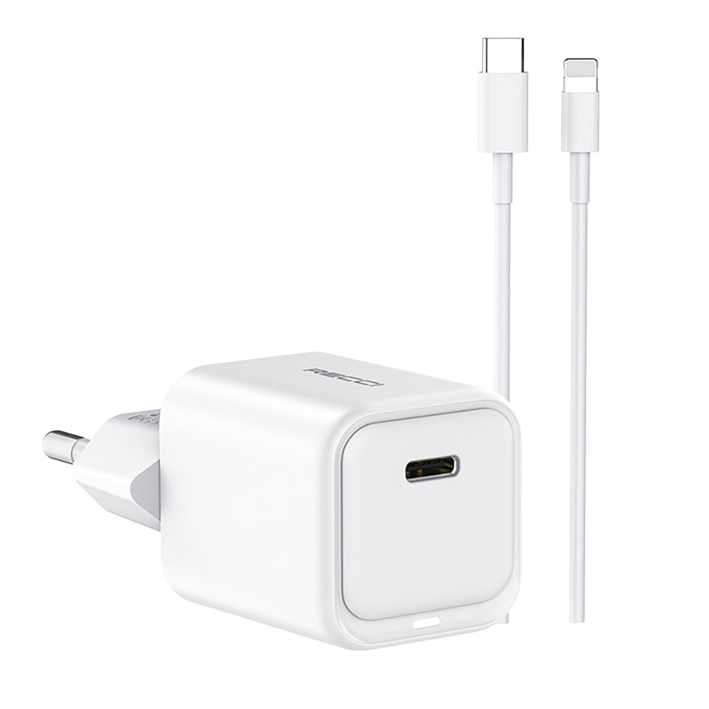 Recci RC65E Hızlı Şarj Başlığı Type-C to Lightning PD 20W Kablolu Şarj Seti Beyaz