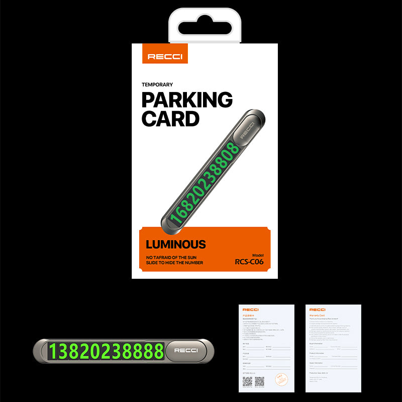 Recci RCS-C06, araç park problemlerine zarif ve işlevsel bir çözüm sunar. Telefon numaranızı kolayca oluşturabilir ve gerektiğinde gizleyebilirsiniz. Şık ve kompakt tasarımı sayesinde aracınızın ön konsolunda estetik bir görünüm sağlarken, karanlıkta dahi numaranızın rahatça okunabilmesini mümkün kılar. Park ederken iletişim kurmanın en kolay ve en şık yolu bu numaratör ile sizlerle!