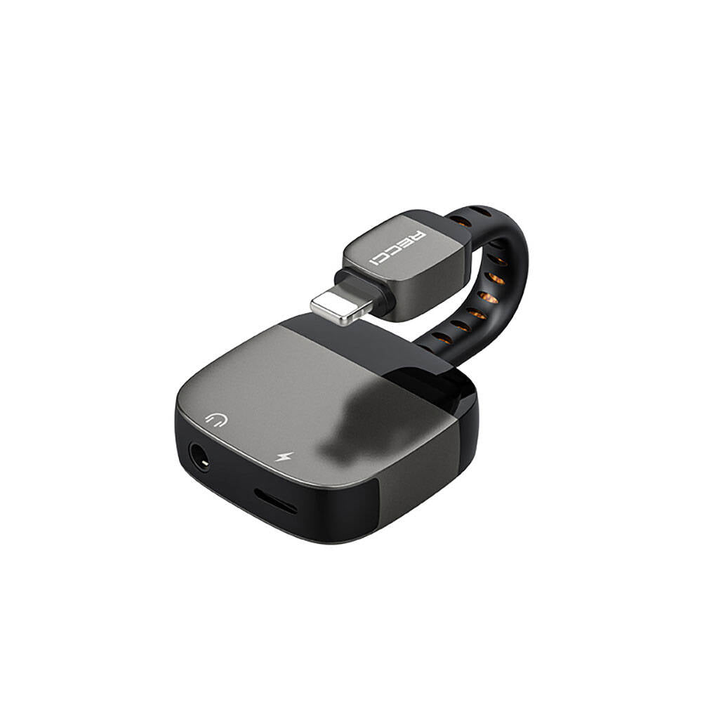 Recci RDS-A12 Lightning 2in1 Şarj ve Ses Adaptörü Siyah