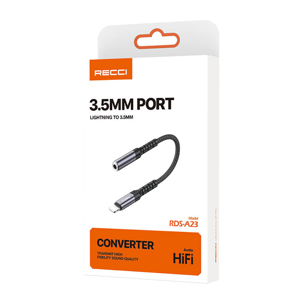 Recci RDS-A23 3.5mm to Lightning Audio Kablo Gri