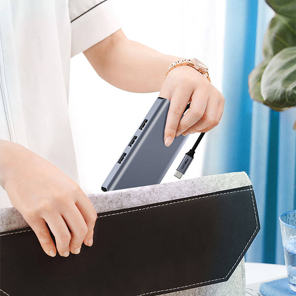 Recci RH09 Type-C 9in1 Hub, hayatınızın her anında yanınızda! Bu eşsiz ürün, birbirinden farklı 9 özelliği tek bir cihazda topluyor, böylece ihtiyaç duyduğunuz her araca hızla ulaşmanızı sağlıyor.