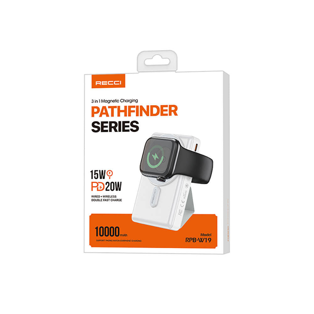 Recci RPB-W19 Standlı M-safe Şarj Özellikli Powerbank 10.000mAh Beyaz