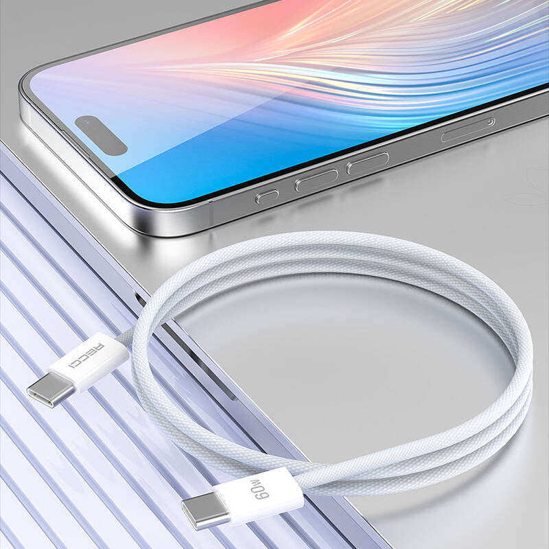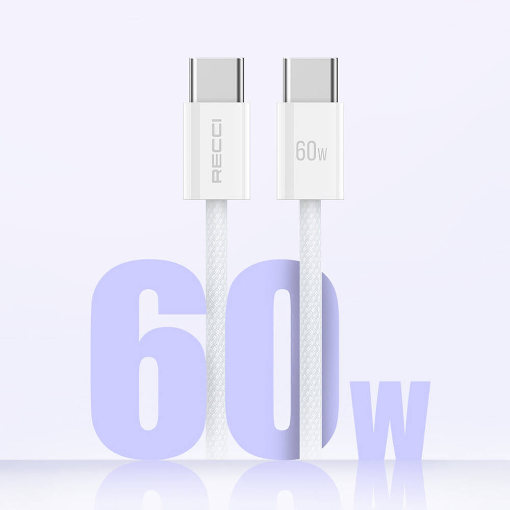 Recci RS13CC Nature Serisi 60W Hızlı Şarj Özellikli Type-C To Type-C PD Kablo 1.2M Beyaz