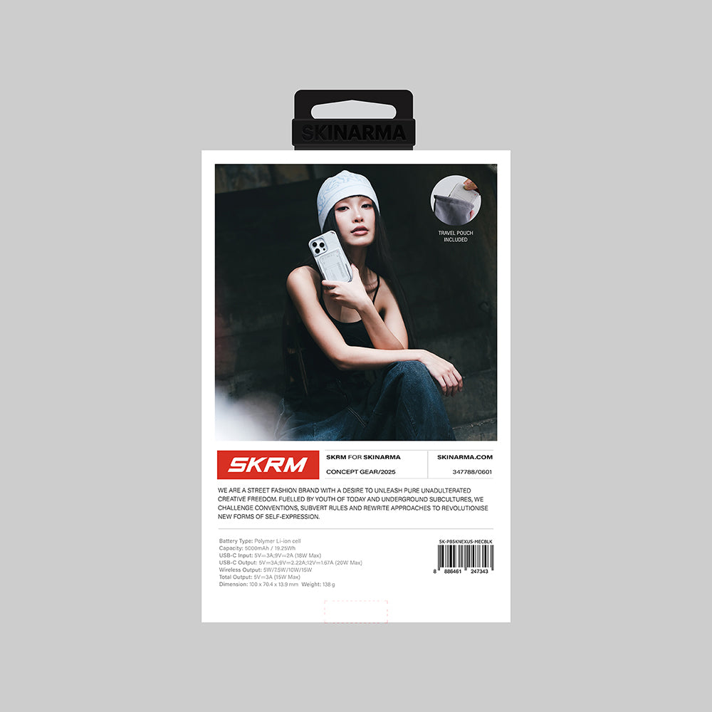 Skinarma Nexus Mecha Kablosuz ve PD Hızlı Şarj Özellikli Metal Standlı Taşınabilir Powerbank 20W 5000mAh Siyah