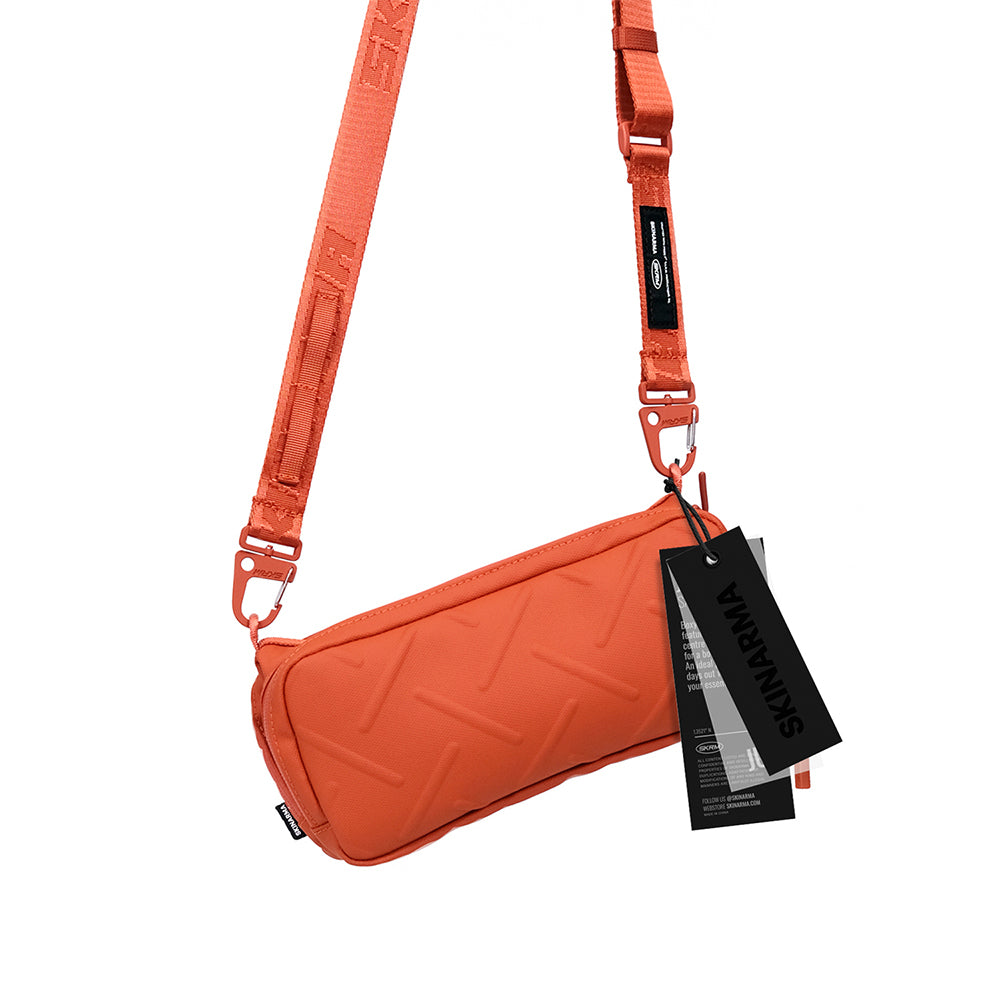 Skinarma Sacoche Juno Cross-Hatch Desenli Naylon Scout Boyun Askı Kayışlı Çapraz Vücut Çantası Turuncu