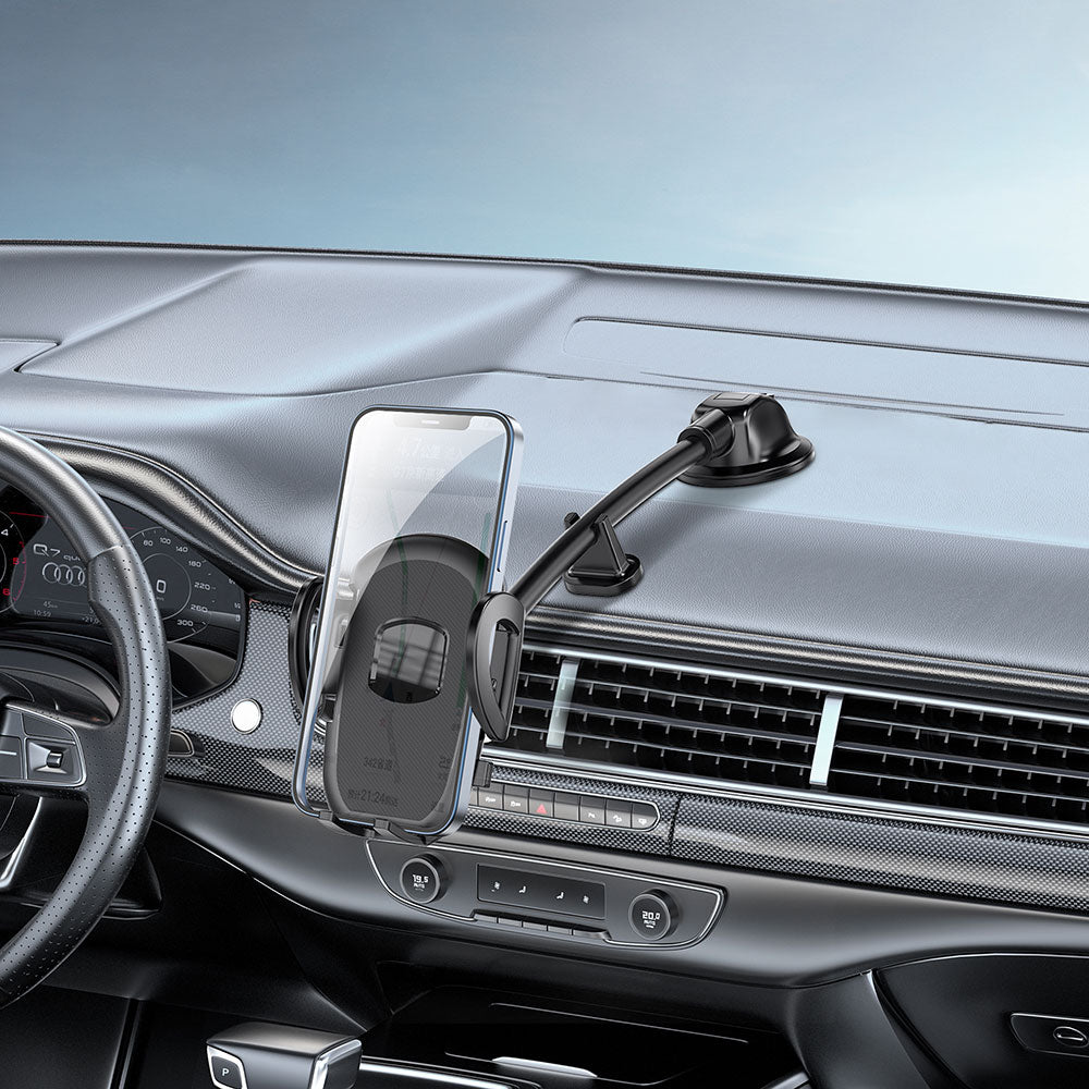 Wiwu CH016 Otomatik Mekanizmalı Esnek Spiralli Vantuzlu Tasarım Araç Telefon Tutucu Siyah