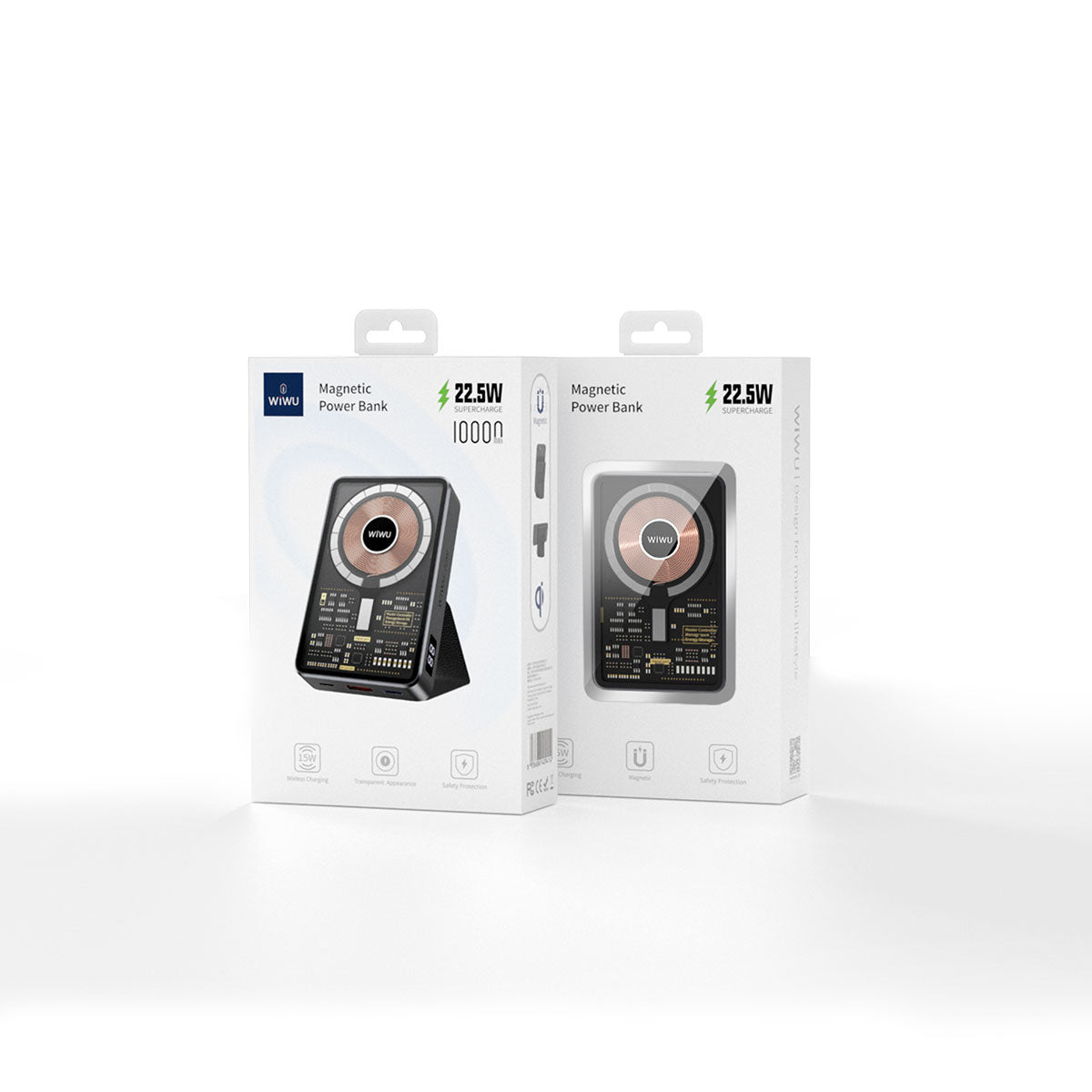 Wiwu JC-21 Hızlı Şarj Özellikli Şarj Göstergeli Standlı M-safe Wireless Powerbank 22.5W 10000mAh Siyah