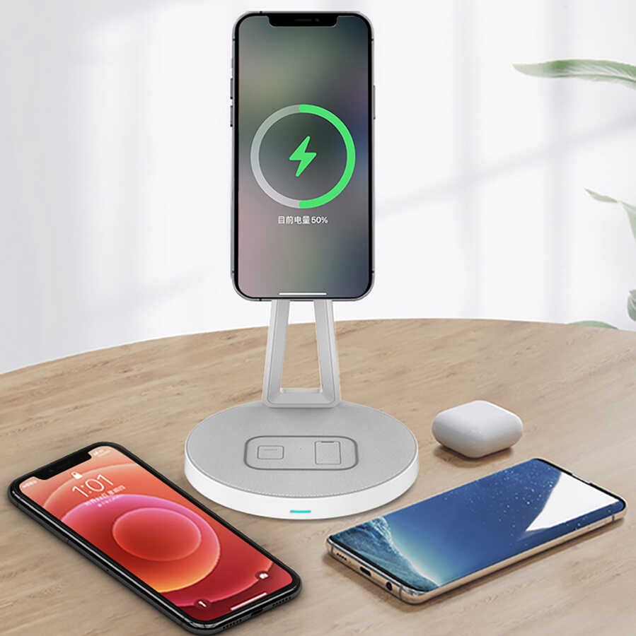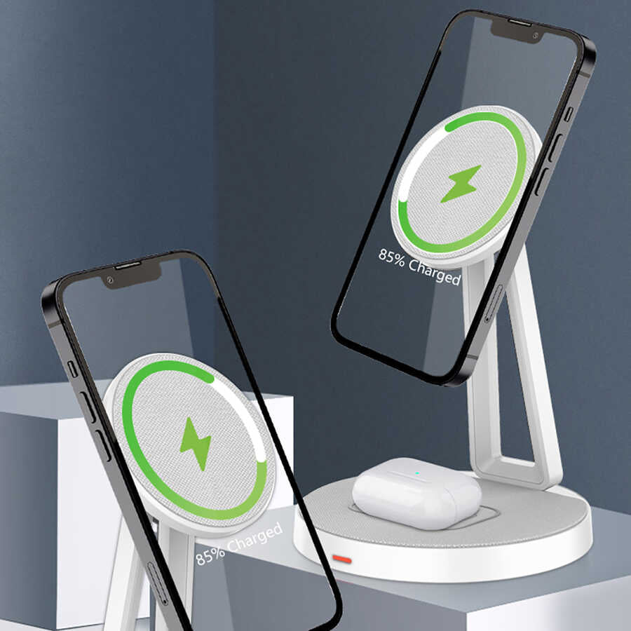 Cep telefonunuzu koyabileceğiniz ve stand olarak kullanabileceğiniz kablosuz şarj destekli magnetik stand