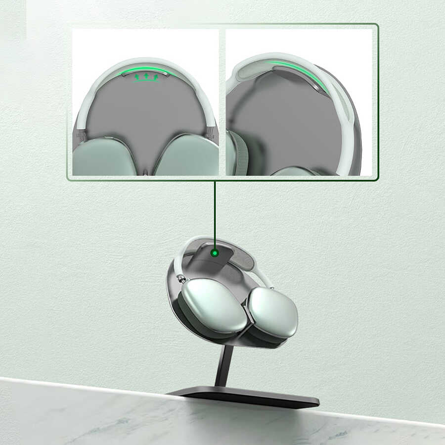 Otomatik uyku tasarımı Airpods Max'inizi yerleştirdiğinizde kulaklık otomatik olarak bağlantıyı keser ve ultra düşük güç moduna geçer. (Ultra Düşük Güç Modu aktif olduğunda Bluetooth ve Bul özelliği kapatılır.)