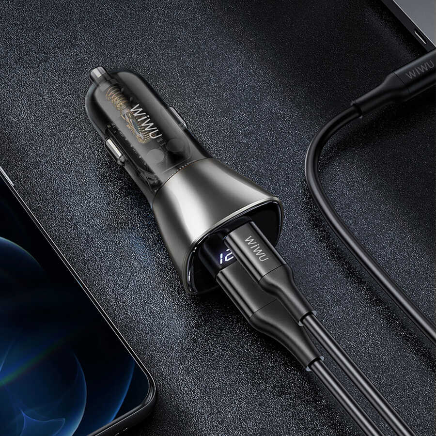Wiwu PC500 72W PD QC3.0 Ultra Hızlı Şarj Destekli Dijital Göstergeli Araç Şarj Başlığı