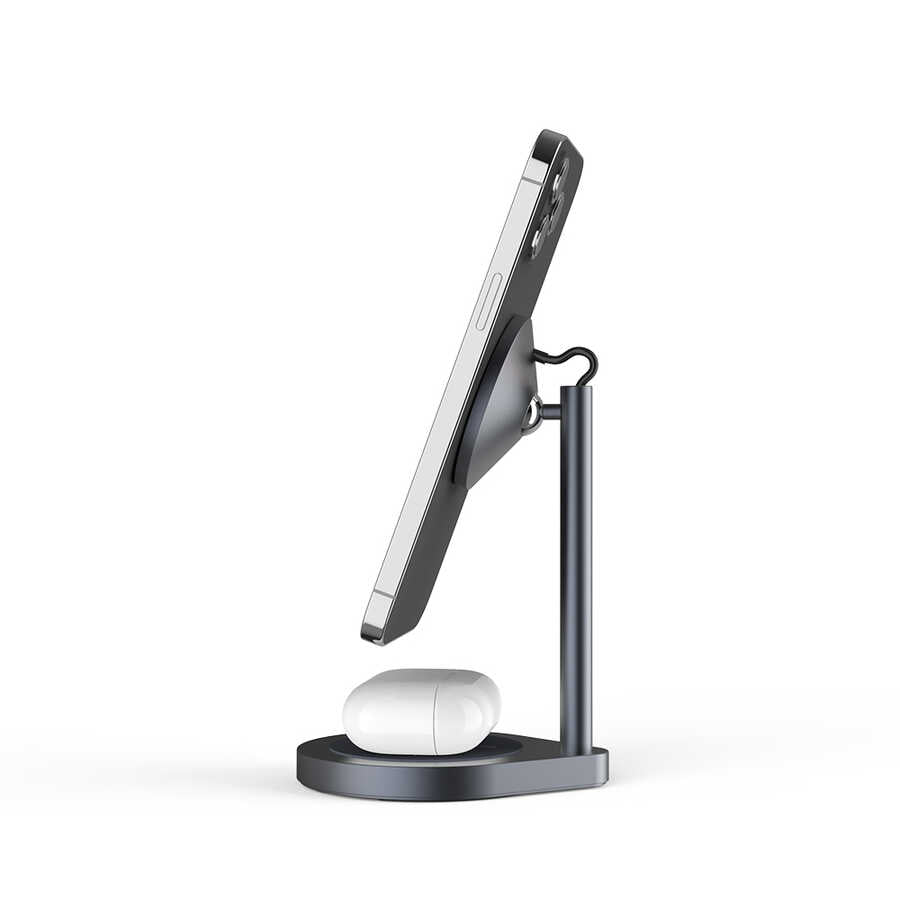 Wiwu Power Air X25 2 in 1 Kablosuz Şarj Standı Gri