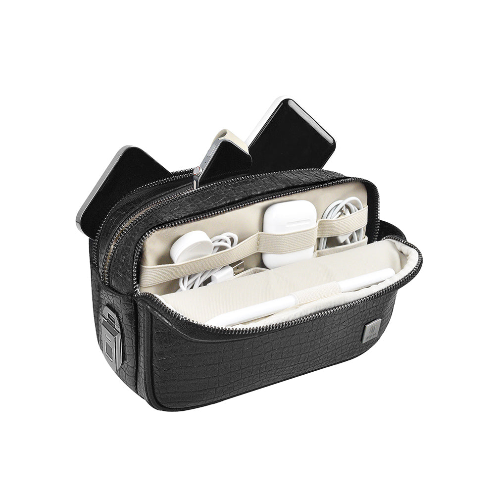 Wiwu Salem Serisi Parmak İzi Kilitli Çok Fonksiyonlu Taşınabilir Mobil Aksesuar Çantası Siyah