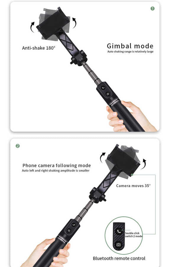 Bluetooh uzaktan kontrolü ile anında mod değiştirebilir , yatay ve dikey olarak cihaza yön verebilir video ve fotoğraf çekebilirsiniz