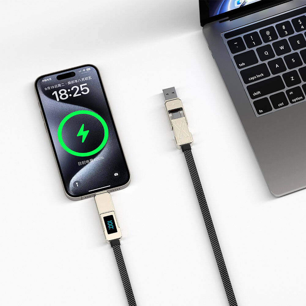 Hem şarj hem de veri aktarımı için mükemmel bir çözüm sunan bu kablo, 480Mbps veri iletim hızı ile dosyalarınızı hızlı ve güvenli bir şekilde aktarır. Akıllı dijital ekranı sayesinde, şarj ve veri aktarımı sırasında gerçek zamanlı olarak bilgi alabilirsiniz. 150 cm uzunluğu ile rahat kullanım sağlar ve O/RMM018-2017 uygulama standardına uygundur.