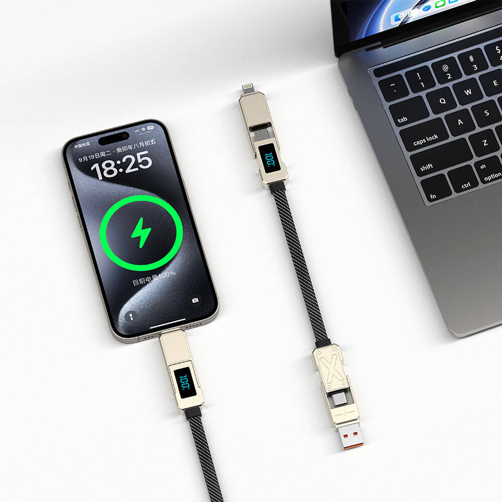 Wiwu Wi-C039 Titan Serisi 4in1 A+C to C+L LED Dijital Göstergeli Şarj ve Data Kablosu 15cm